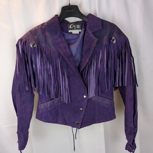 Vintage Suede Purple Fringe Women's Jacket Western Size S In VGUC