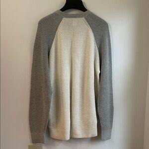 NWT GAP Men's Cream and Gray Crewneck Raglan Sleeve Waffle Knit Sweater L