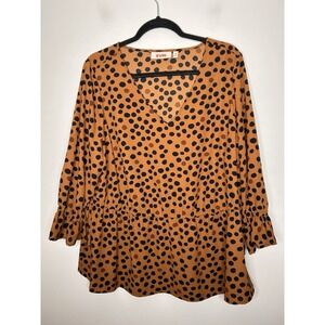 EVRI Brown Black Polka Dots Tunic 3/4 Bell Sleeve Top Women's Plus Size 1X