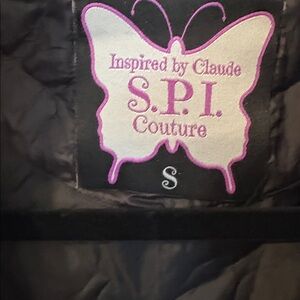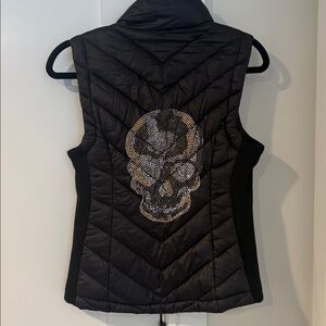 S.P.I. Couture Black Quilted Studded Skull Puffer Vest Size Small