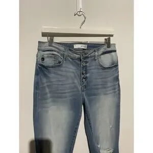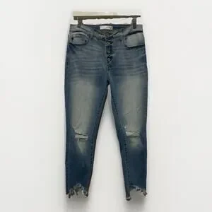 KANCAN Distressed Skinny Ankle Jeans Button Fly Women Size 11/29 Blue Denim