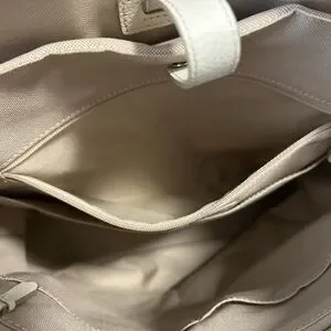 This bag is a Cole Haan Grand Ambition Convertible Backpack, specifically in a tricolor colorway like "Angora/Egret/Dune". It is highly versatile, featuring a 3-way convertible design that allows it to be worn as a backpack, shoulder bag, or crossbody.