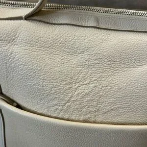 This is used condition. Has some small discoloration as seen in pictures but is in noticeable. The leather is a little bunched in 2 spots. Front above the pocket and back side on bottom. Both in pictures. Still has a lot of life and is very beautiful.