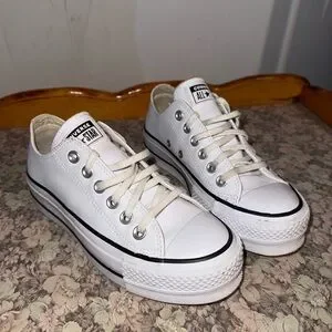 Timeless white Converse sneakers. Low-top design with lace-up closure. Ideal for everyday wear.