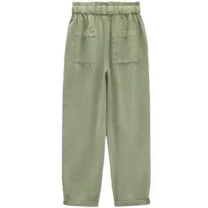 High-waisted pants with elastic drawstring waistband. Front pockets and back patch pockets. Straight leg. Turned up cuffs.