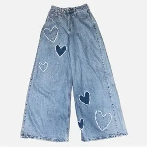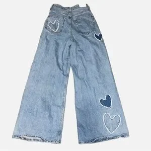 Social Tourist Ultra Highrise Baggy Wide Heart Patch Jeans