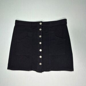 Altard State Women's Black Denim Skirt Front Button Pockets Mini Casual Medium
