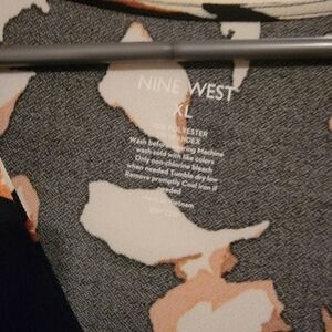 A womens vneck Nine West Drss. The dress has no pockets and has a tie in the back for a tighter fit.