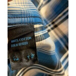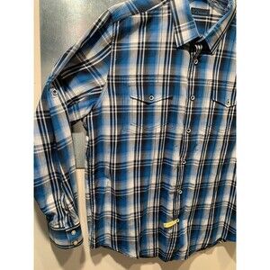 7 DIAMONDS Blue Plaid Button Flap Pocketed Long Roll Tab Sleeves XXL Shirt
