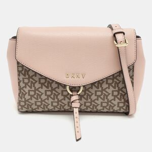Dkny Beige/pink Signature Coated Canvas And Leather Shoulder Bag