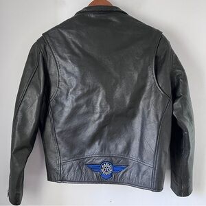 Vintage Leather Motorcycle Jacket Black with Pins Womens Size Medium Shows Wear