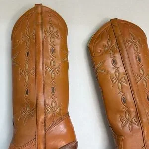 Step out in style with these tan leather western boots. Perfect for adding a touch of rustic charm to any outfit.