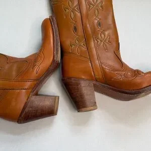 Vintage Dingo Western Heeled Boots Brown Orange Women’s Size 5.5