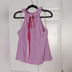 Trina Turk Lavender Ruffle Neck Sleeveless Blouse Pleated Cotton XS