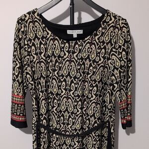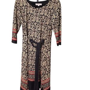 Robbie Bee Metallic Gold & Black Patterned Mini Dress with Belt - Size M