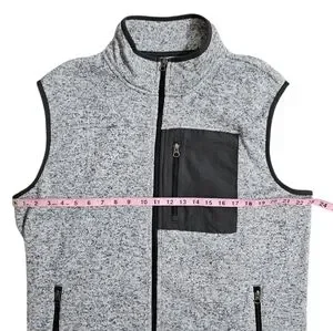 Gray vest with multiple pockets on outside. Soft, comfortable, versatile.