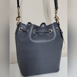 New Dooney & Bourke Dark Gray Saffiano Leather Drawstring Bucket Bag