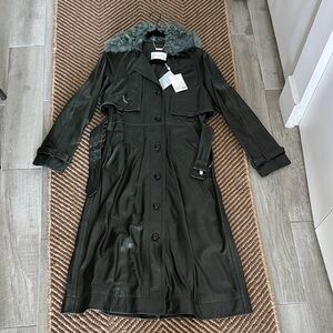Zimmermann Forest Green Rhythm Trench Coat with Detachable Fur Collar