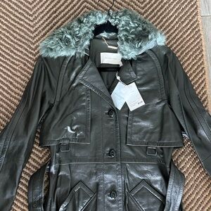 Chic black trench coat with a stylish fur collar. Ideal for a sophisticated look.