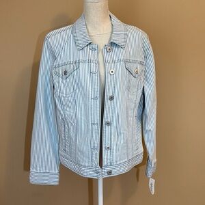 NWT Style & Co Sedona Blue White Striped Button Down Denim Jacket