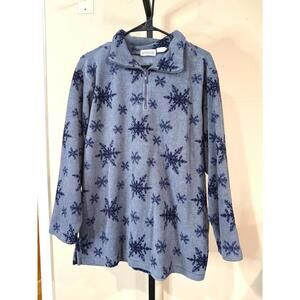 Women's fleece jacket by Lands' End in grey with navy blue snowflake pattern.