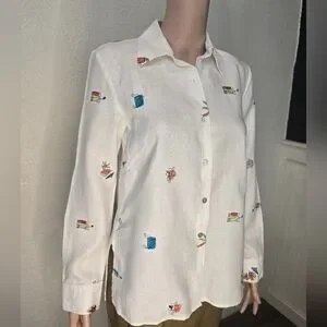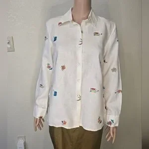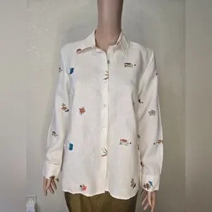 Women's RICHARD MALCOLM White 100% Irish Linen Shirt Size Small