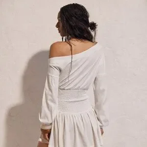 This ultra-flattering dress features a smocked waist, off-shoulder neckline, and flowy mini skirt for that effortless boho / romantic / cottagecore vibe Free People is known for.
