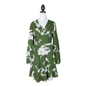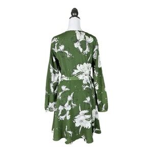Voodoo Vixen Green & White Floral Print Long Sleeve Wrap Mini Dress 10/XL