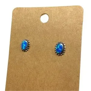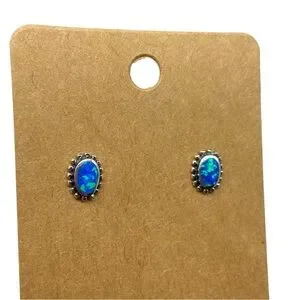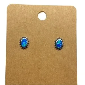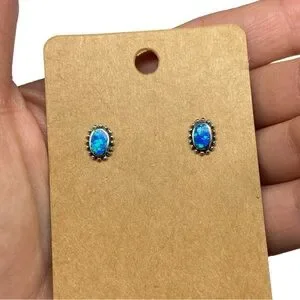 Beautiful blue Australian fire opal oval shaped dainty stud pierced style earrings. Solid sterling silver and stamped 925. They measure approx 9mm long. New.