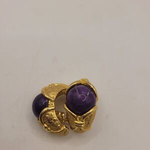 Brushed Gold Purple Acrylic Vintage Clip Earrings