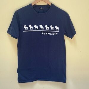 Vintage 90s Vermont t-shirt size small navy blue w/ parade of moose