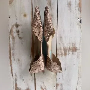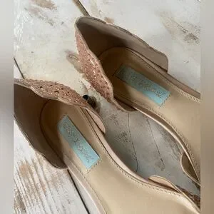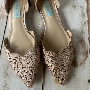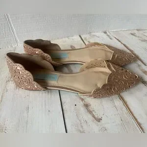 These Betsey Johnson Lucy D'Orsay flats are lovely with stylish cut-out features and rhinestones. They are part of the bridal blue collection. In preloved nice condition, see all pictures.