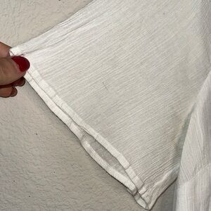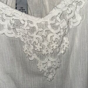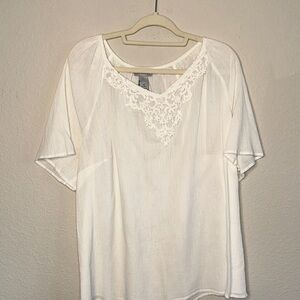 Flowy cream blouse featuring delicate lace accents. Perfect for versatile styling. PTP 26 and length is 27. Gauges style fabric. Great condition.