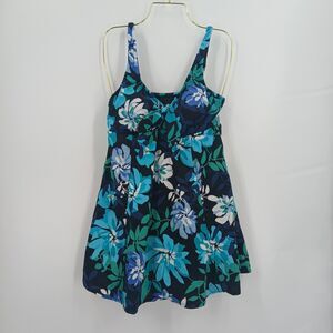 womens vintage croft and barrow blue floral tankini bikini top size 12 cute