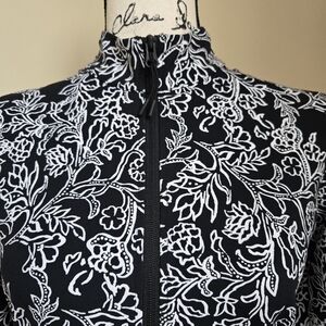 Tommy Bahama Active Top Womens S Full Zip Black White Floral
