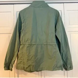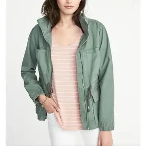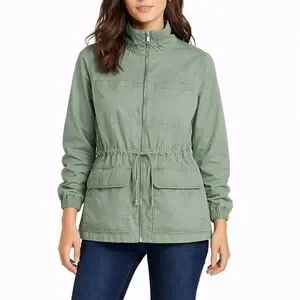 Description: cotton twill field jacket with toggle tie at waist and pockets