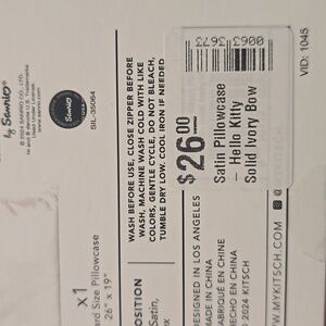 ❤️BUY 2 GET 1 FREE Kitsch x Hello Kitty Satin Pillowcase in Ivory Kitty Bow