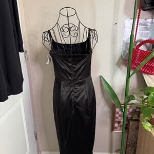 Lulus Certain Stunner Black Satin Bustier Midi Dress M