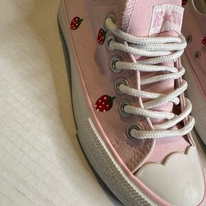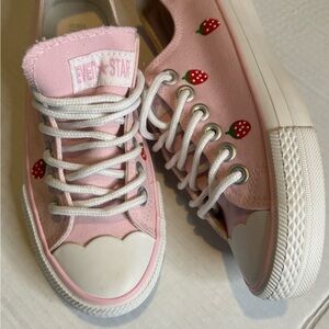 Kawaii Strawberry Canvas Shoes Stylish and comfortable pink kids shoes with charming white accents. Perfect for everyday wear.