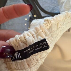 Chic cream blouse with textured puff sleeves. Perfect for stylish outings.
