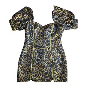 For Love & Lemons Jett Leopard Bodycon Mini Dress M Puff Sleeve Glam Baddie