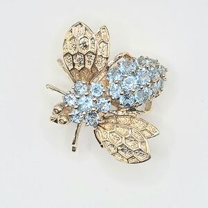14KYG BLUE TOPAZ BEE BROOCH/PENDANT
