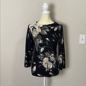 Neiman Marcus Classiz 100% Cashmere Black Floral Sweater women's Size Medium