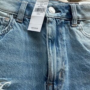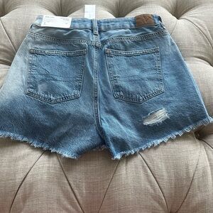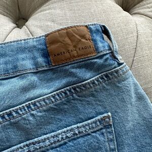 These jean shorts from American Eagle Outfitters showcase a classic blue hue with a vintage-inspired distressed look. The frayed hemlines and relaxed fit make them ideal for casual wear, offering a stylish and comfortable option for everyday outings.