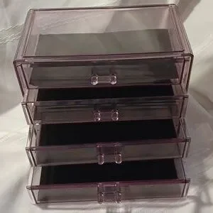 Organize your space with this stylish transparent purple storage drawer. Perfect for keeping your items neatly arranged.9.25Longx5.32Wx7.87H