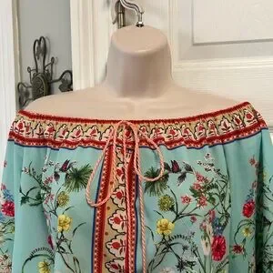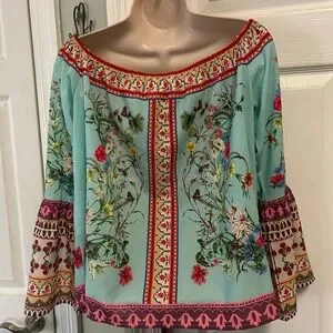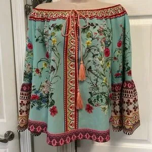 Umgee Floral Boho Blouse Off the Shoulder Small Mixed Print Womens Gypsy Top