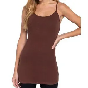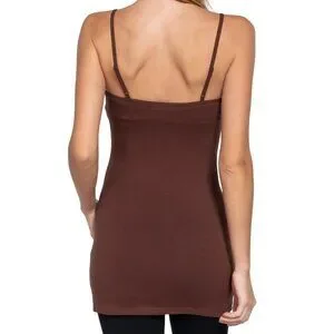 NWT- Women's Long Cami Tunic with Shelf Bra, Sepia Brown