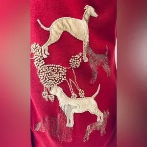 Susan Bristol Red Embroidered Dog Cardigan Wool Blend Button Cottagecore F22605