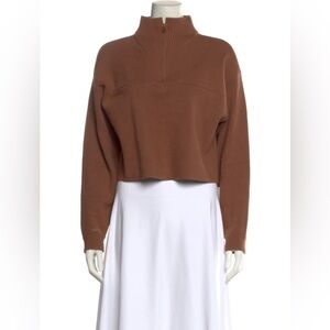 Brand New (NWT) Lunya Cozy Cotton Silk Pullover 1/4 Zip Sweater - walnut Brown