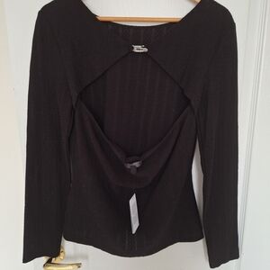 NWT Guess Jet Black Open Back with silver Buckle Detail Long Sleeve Embellishment Top. perfect to show off your back or any back tattoos!